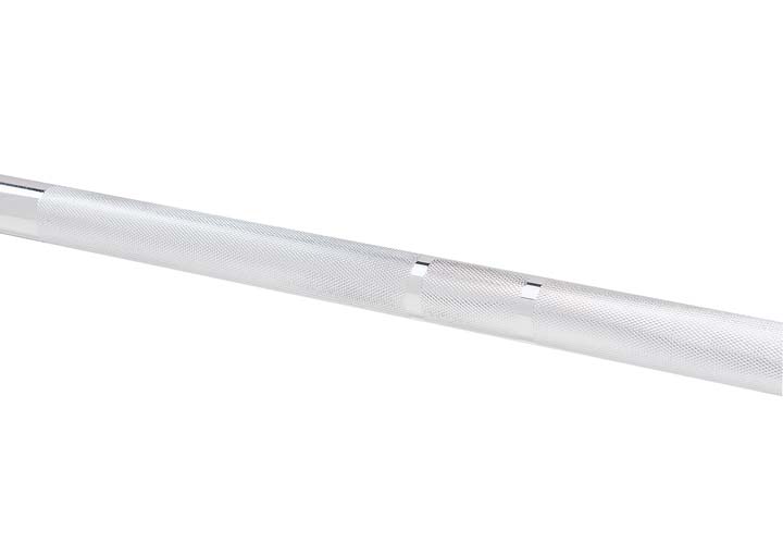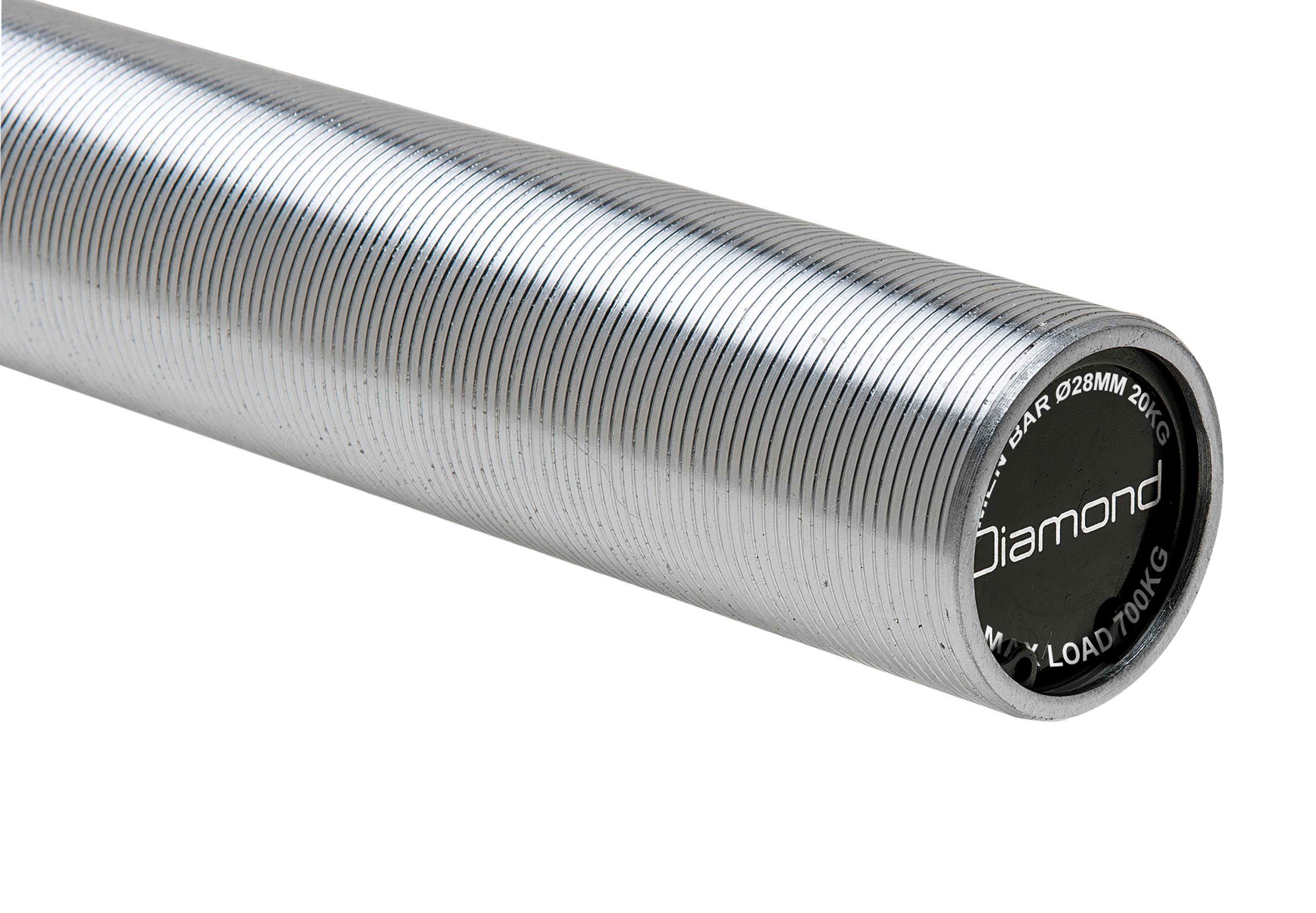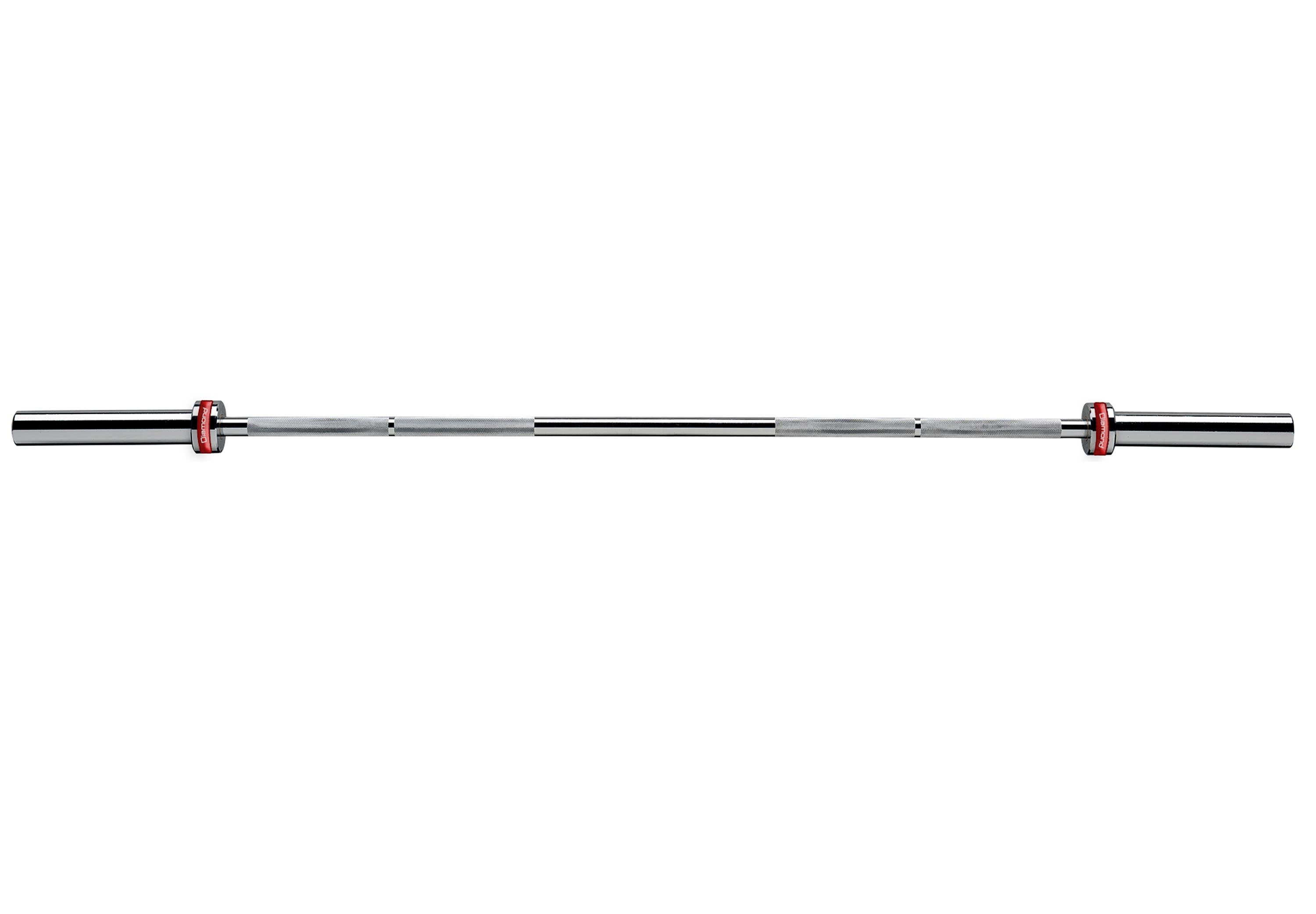 Bilanciere Olimpico Professionale da 220 cm con manicotti cromati, bronzine, 6 cuscinetti a rulli e tornitura antiscivolo. Impugnatura da 28 mm. Massimo peso caricabile 700 Kg. Ideale per i circuiti funzionali, per il CrossFit® e lavori di Power Lifting. Consigliato anche per l’allenamento in palestra con panca o rack. Coppia collari di sicurezza inclusi.